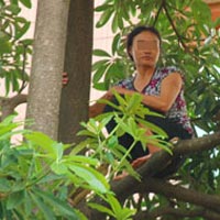 Giải cứu 1 phụ nữ leo ngọn cây... đòi tự tử