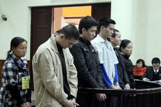 Các bị cáo gồm: Lê Thị Lâm (SN 1987, trú tại thôn Thái Lai, xã Tiến Thắng, huyện Mê Linh, Hà Nội; Nguyễn Thị Hà (SN 1987, trú tại thôn Ngọc Chi, xã Vĩnh Ngọc, huyện Đông Anh, Hà Nội), Hà là chị dâu của Lâm; Lê Văn Sơn (anh trai của Lâm, SN 1983, thôn Thái Lai, xã Tiến Thắng, huyện Mê Linh); Nguyễn Văn Tình (SN 1986, trú tại tổ 50 thị trấn Đông Anh, Hà Nội; Nguyễn Hữu Thắng (SN 1982, trú tại xã Vĩnh Ngọc, Đông Anh); Nguyễn Anh Tuấn (SN 1982) và Nguyễn Tiến Đức (SN 1984 cùng trú tại tổ 36 thị trấn Đông Anh); Lê Thị Hường (SN 1978, thôn Bảo Đức, xã Đạo Đức, huyện Bình Xuyên, Vĩnh Phúc); Nguyễn Hữu Đông (SN 1991, thôn Ngọc Chi, xã Vĩnh Ngọc, Đông Anh).