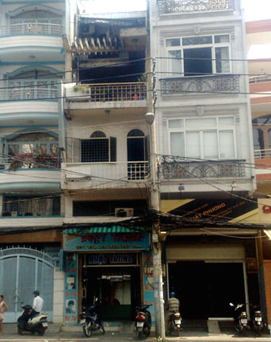 Căn nhà trên gồm 1 trệt và 3 lầu, do chị Trần Thị Hoài làm chủ, dưới tầng trệt. Chị Hoài cho thuê để mở tiệm cắt tóc Nhật Trung. Toàn bộ tài sản của tiệm cắt tóc cháy rụi.