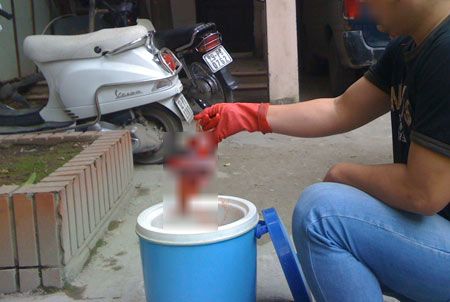 “Chỉ cần một một bình đá lớn chứa nhau thai, cứ gom được vài cân là tôi gọi thẳng cho chú qua lấy”, người đàn bà chừng ngũ tuần, tên T., làm nghề trông xe ngay trước cổng Bệnh viện Đa khoa Sơn Tây (Hà Nội) đon đả chào hàng.