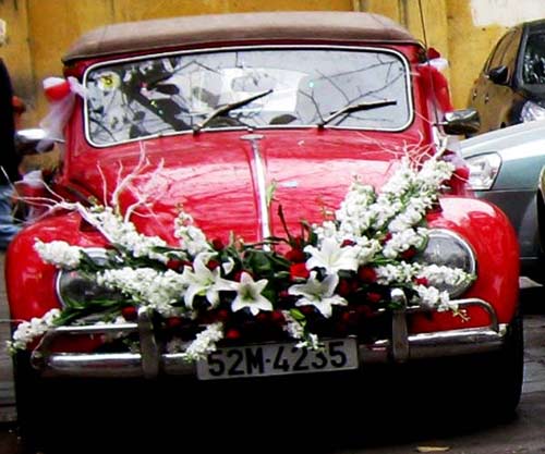 Chiếc ô tô cổ chở cô dâu, chú rể
