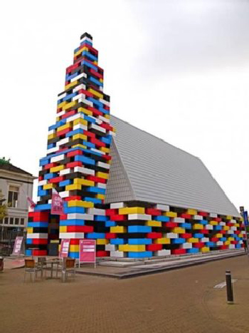 Có thể, nếu nh́n qua, ai đó sẽ tưởng nhà thờ này được xây dựng bằng các viên gạch LEGO nhưng thực chất, tác phẩm này được dựng lên từ các khối bê tông có h́nh những viên gạch LEGO. Đây là tác phẩm độc đáo của hai kiến trúc sư Michiel de Wit và Filip Jonker nhân dịp lễ Grenswerk tại thành phố Enschede, Hà Lan.