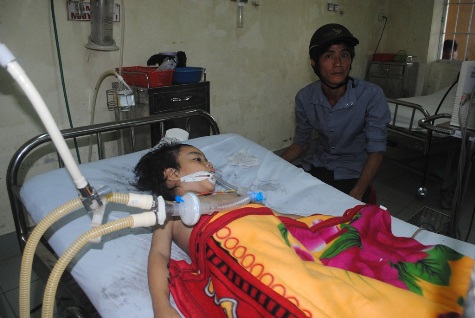 Cháu Trần Minh Khang khi được chữa trị tại bệnh viện
