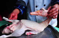 Tại Quảng Đông, do thịt ngỗng có giá gấp đôi so với thịt vịt, nhiều cửa hàng đă "phù phép" vịt thành món ngỗng quay với cách thức cực kỳ đơn giản để đánh lừa khách hàng nhằm bán giá cao hơn.