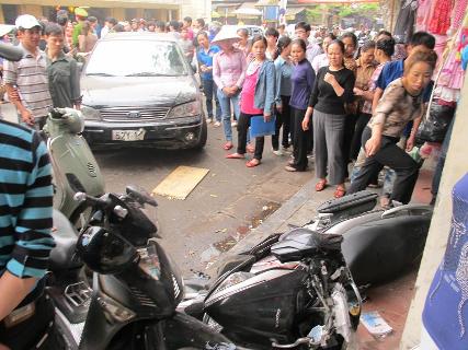 Một số người chứng kiến cho biết, vào thời điểm trên, chiếc xe ô tô hiệu Ford Laser màu đen BKS 52Y- 1467 do một phụ nữ điều khiển đã mất kiểm soát, không làm chủ được tốc độ, nhảy chồm lên, lao thẳng vào dãy nhà trước cổng chợ Đồng Xuân.