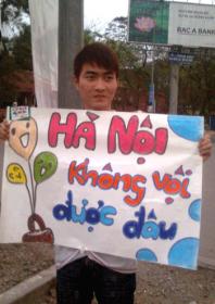 Lạ lẫm nhóm bạn trẻ ôm biểu ngữ ở ngã tư Hà Nội