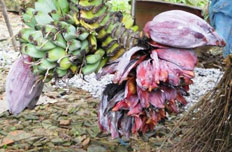 Một cây chuối voi tại xóm Long Đình, xã Sơn Trung, huyện Hương Sơn (Hà Tĩnh) sau khi ra búp trổ buồng được 5 nải với nhiều quả rất to, đột nhiên lại trổ thêm gần chục búp hoa khác có hình dạng hoa sen.