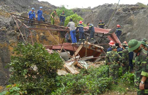 Người dân địa phương cho biết, hiện còn ít nhất 7 người đang bị vùi lấp dưới đống đất đá thải.