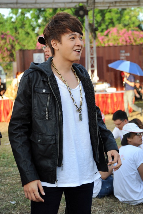 "Chàng Bắp" xuất hiện tại trường đua Phú Thọ với trang phục giản dị. Ngô Kiến Huy có phần ốm hơn so với thời gian trước nhưng anh vẫn gây được ấn tượng với mọi người nhờ nụ cười và gương mặt thơ trẻ.