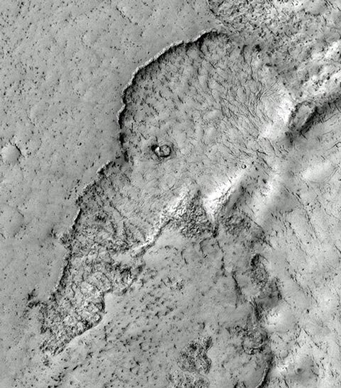 Hình đầu voi chỉ là một phần sản phẩm của nham thạch chảy tràn trên bề mặt hành tinh đỏ. Ảnh: Daily Mirror