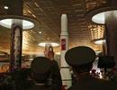 Binh sỹ Triều Tiên xem mô hình tên lửa Unha-3, tên lửa được phóng vào hôm thứ sáu tuần trước, tại một sự kiện kỷ niệm 100 năm ngày sinh của nhà lãnh đạo sáng lập Kim Nhật Thành ở thủ đô Bình Nhưỡng ngày hôm qua 17/4.