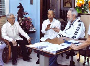Cựu lãnh đạo Cuba Fidel Castro (P) trong cuộc gặp với Tổng Bí thư của Đảng Cộng sản Việt Nam, Nguyễn Phú Trọng (L) tại Havana hôm 13/4/2012.AFP photo
