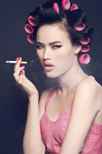 Người mẫu Tuyết Lan với điếu thuốc cuộn khói