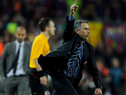 Trong khoảnh khắc phấn khích tột độ vì Inter vào chung kết Champions League năm 2010, Mourinho, khi đó, về danh nghĩa vẫn là kẻ chiến tại tại Nou Camp.