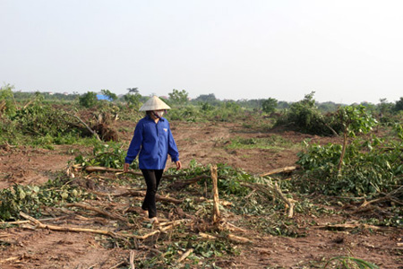 Người dân bên cạnh mảnh vườn của ḿnh sau khi cưỡng chế. Ảnh : Vnexpress