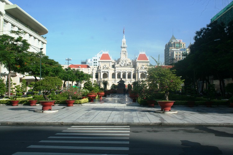 Sự vắng lặng tại tượng đài của Chủ tịch Hồ Chí Minh trước Uỷ ban nhân dân thành phố