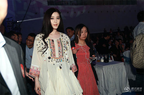 Phạm Băng Băng lấy tay che ngực khi nói chuyện với quan khách