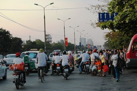 Nhiều tuyến xe buýt dù đã tăng cường với 5 phút một chuyến, nhưng do khách quá đông nên tại các điểm dừng đón, xe buýt chỉ mở cửa cho khách xuống rồi lại vọt đi luôn.