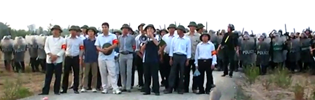 Người dân: Hiện tại bây giờ nó xé lẻ dân ra, đông lắm, khoảng 3000 thằng nó mặc toàn quân phục, nó mang mã táu nó đến để xé lẻ dân ra từng tí một. Nó đàn áp nó có khoảng 40 xe, vừa cẩu, vừa máy ủi, nó bắt đầu ủi của dân rồi.