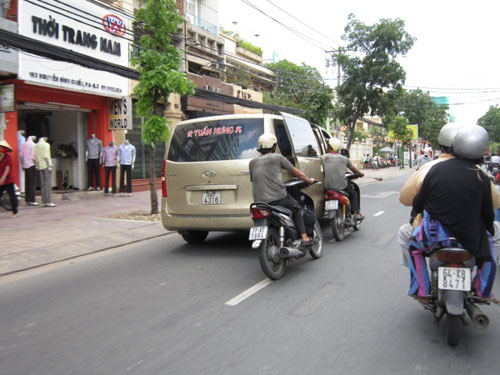 Hai xe máy đẩy ô tô 7 chỗ