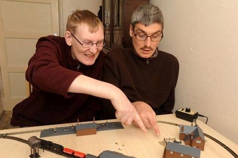 Tất cả những gì cuốn hút bọn trẻ con đều làm anh em nhà Clark thích thú. Ảnh trên chụp hai anh em đang cùng chơi bộ đồ chơi tàu hỏa. Ảnh: Daily Mirror