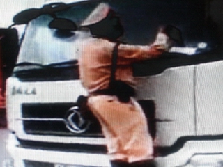 Không kịp thoát khỏi chiếc xe to lớn, viên cảnh sát đã phải nhảy lên đầu xe tải và bám vào cần gạt nước của xe. Đi được một đoạn, tài xế đã cho xe dừng lại và chờ chiến sĩ cảnh sát nhảy xuống, anh này tiếp tục lên xe chạy tiếp. Tuy nhiên, viên cảnh sát vẫn kiên quyết dừng xe, tiếp tục bám vào cần gạt nước và bị đưa đi một đoạn đường khá dài.