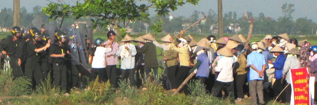 Bà con nông dân bị đánh đập dã man, nhiều người bị đánh đến đổ máu.