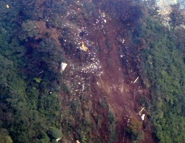 Hình ảnh chụp tại địa điểm chiếc Sukhoi Superjet-100 gặp nạn cho thấy sườn núi này khá dốc và chiếc máy bay đã vỡ ra thành nhiều mảnh vụn nằm rải rác trên dốc núi.