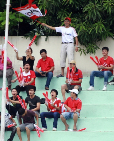 CĐV mặc áo trắng cầm cờ vẫy được xác định là người đă đánh trọng tài Vơ Minh Trí - Ảnh: N.K