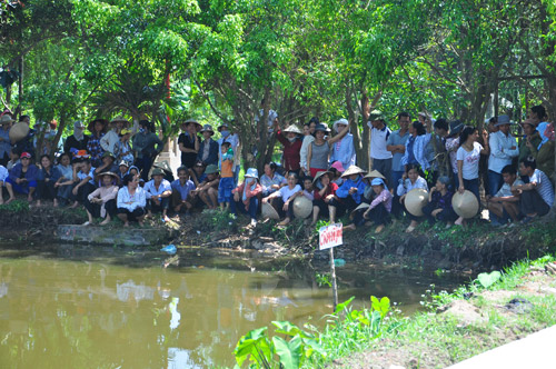 Hàng trăm người dân tụ tập quanh ao nước nơi phát hiện xác Thùy |