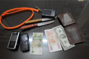 Chúng lục soát, lấy được một điện thoại di động QMobile 128, một chiếc máy ảnh và một chiếc ví (bên trong có 2USD, một nhân dân tệ Trung Quốc, và khoảng 600.000đ).