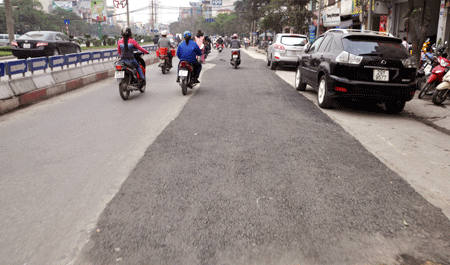 Trong quá trình thi công, tại các đoạn tuyến này sẽ có biển báo, đèn tín hiệu, người chỉ dẫn và phân luồng giao thông tại chỗ. Sau khi hoàn thành khoảng 100m dài thì tiến hành rải bê tông.