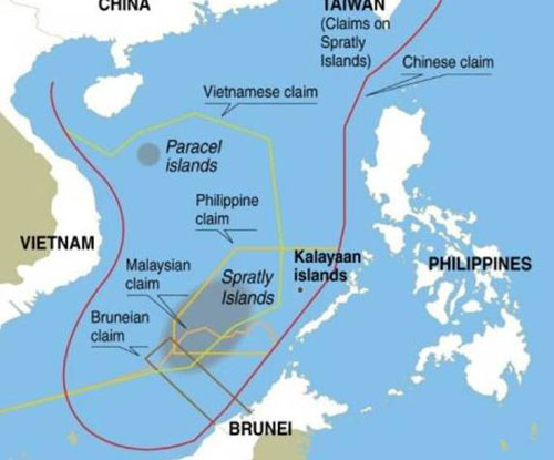 Trung Quốc tuyên bố chủ quyền trên Biển Đông với diện tích được xác định bằng “đường lưỡi bò” (màu đỏ).