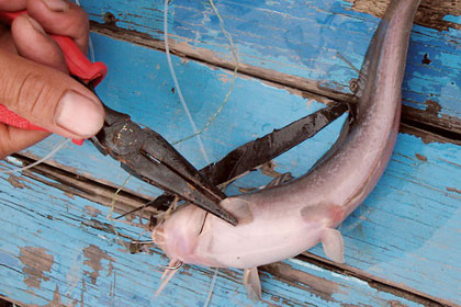 Ngạnh cá ngát rất độc nên khi ngư dân bắt được cá, thường lấy kìm bẻ ngay ngạnh.