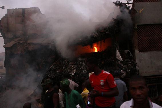 Hôm Chủ Nhật, ngày 03/06/2012, đã xảy ra một vụ rơi máy bay thảm khốc tại thành phố Lagos, Nigeria. Chiếc máy bay chở khách đang vận chuyển 150 người. Dưới đây là những hình ảnh đầu tiên từ vụ tai nạn thảm khốc này.