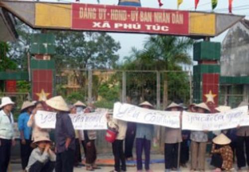 Người dân tập trung trước UBND xã Phú Túc hôm 17-04-2012, đòi chính quyền thả người bị công an bắt giữ.