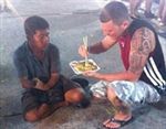 Bức ảnh chàng Tây bón cơm cho người ăn mày lay động cư dân mạng