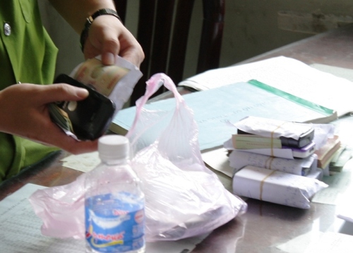 Công an quận Gò Vấp đang niêm phong tiền tang vật của các đối tượng cá độ bóng đá