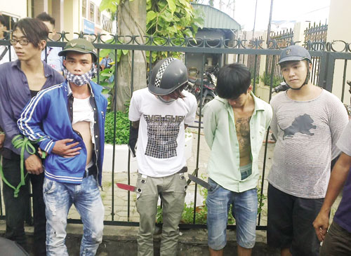 Nhóm giang hồ bị các “hiệp sĩ” khống chế chiều 14.6 - Ảnh: Đỗ Trường