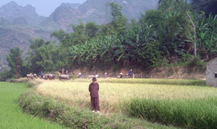 Nhạc sĩ Phạm Duy chụp tại một ruộng lúa ở vùng Lạng Sơn năm 2007.