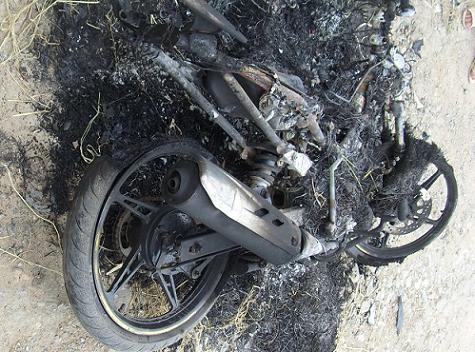 Bị truy đuổi, một tên nhanh chân chạy thoát, tên còn lại bị đánh tập thể dẫn đến tử vong. Chiếc xe máy là phương tiện hai đối tượng sử dụng cũng bị thiêu cháy trơ khung sắt.