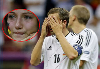 Các ngôi sao và CĐV của đội bóng 'Những cỗ xe tăng' không ngăn được dòng nước mắt sau trận thua Italy 1-2 ở bán kết Euro 2012.