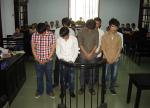 Bị cáo Anh, Hòa, Việt, Huy, Quang, Khang, Thành sau vành móng ngựa.