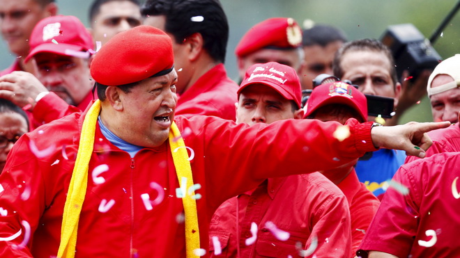 Tổng thống Hugo Chavez tại chiến dịch tranh cử ở bang Carabobo - Ảnh: Reuters