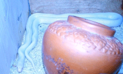 Ánh đèn màu đỏ của chiếc lồng làm cho chú rắn này huyền ảo hơn