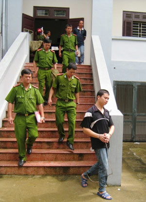 Bị cáo Hùng sau phiên xét xử được dẫn giải về trại. Ảnh: Lê Hoàng.