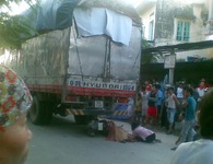 Vụ tai nạn làm vợ chồng anh Quyết văng ra giữa làn đường; cô con gái 3 tuổi bị chiếc xe tải cán chết tại chỗ, con gái 5 tuổi bị gãy chân.