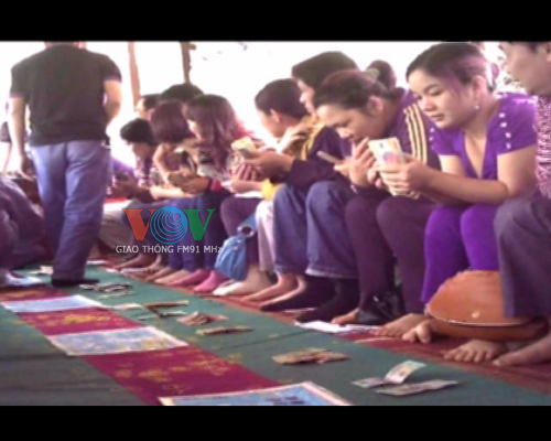Hàng chục người từ các địa phương khác nhau như Lào Cai, Tuyên Quang, Hà Giang… háo hức với tṛ đỏ đen. Lúc này không ai c̣n để ư ǵ khác ngoài việc dán mắt vào bộ bát đĩa với 4 quân 2 mặt đen trắng nhảy tanh tách.