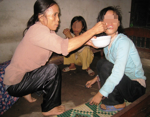 Ba trong số bốn cô con gái đang tuổi trăng tròn đột ngột phát bệnh tâm thần, nhà nghèo, bà Cao Thị Hằng ở làng Yên Cảnh, xã Quảng Yên, huyện Quảng Xương (Thanh Hóa) đành trói và nhốt các con vào căn phòng kín phía sau nhà.