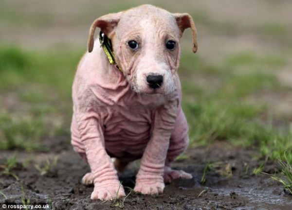 Splash chỉ mới được 12 tuần tuổi và nó gần như không có một sợi lông nào. Hiện nó đã được đưa về trung tâm Dog Trust tại Leeds, phía Tây Yorkshire, Anh. Các nhân viên chẩn đoán Splash mắc bệnh ngoài da mãn tính, do ghẻ gây ra.